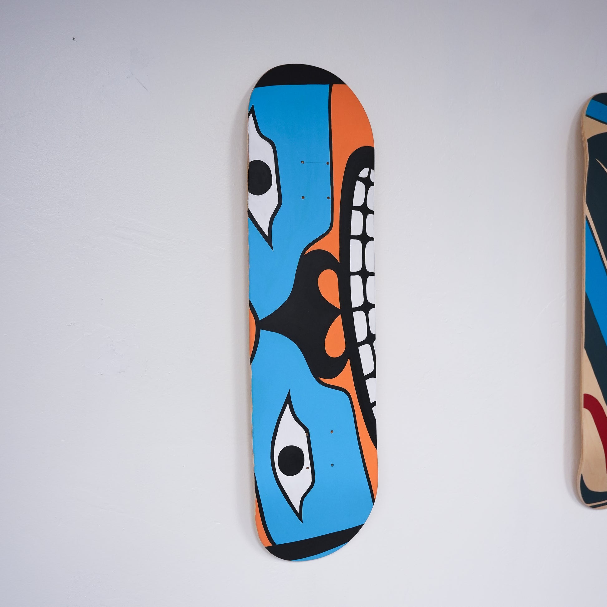 Acrylic paint on 7 ply maple skateboard deck.